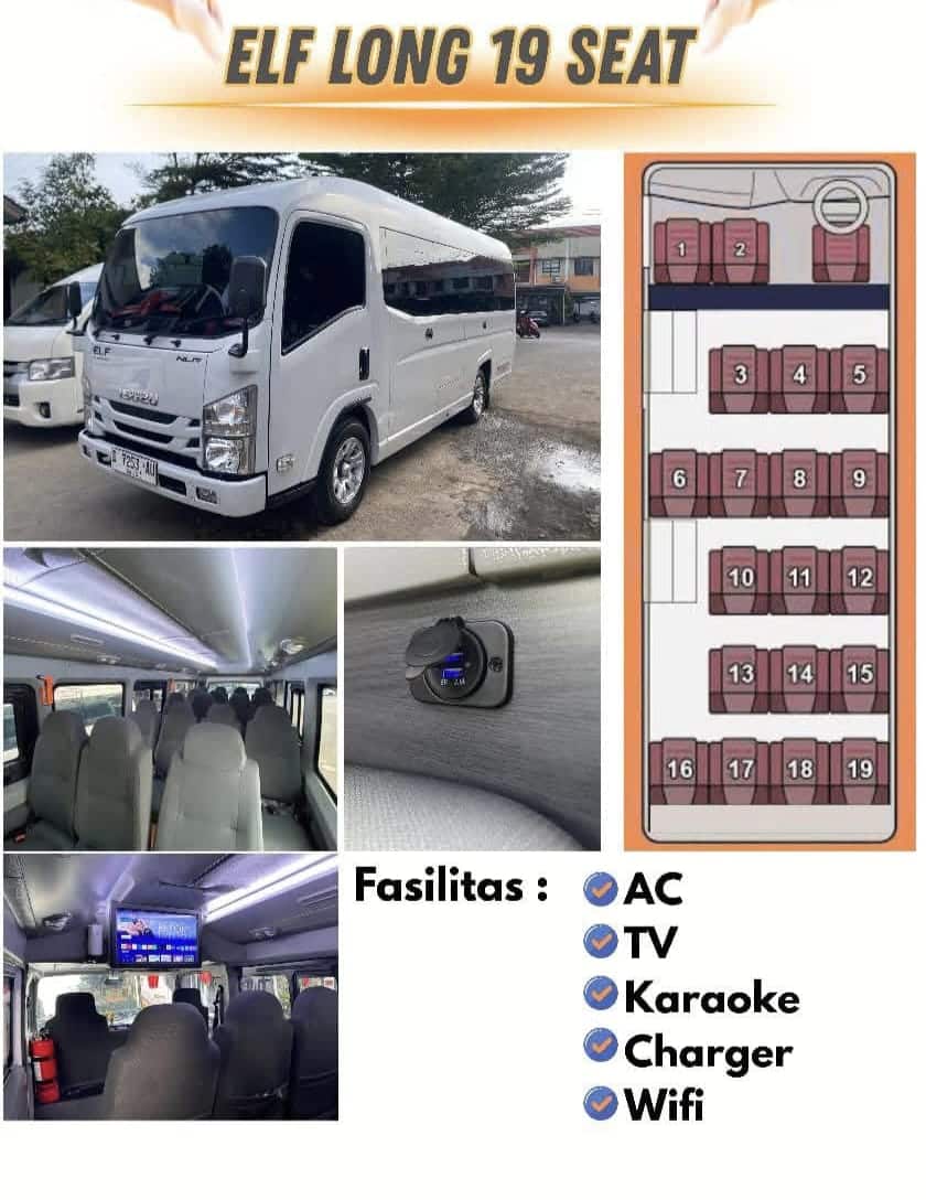 | Elf Long Pariwisata | 19 Seat | 1 Hari | Rp 3.800.000 |